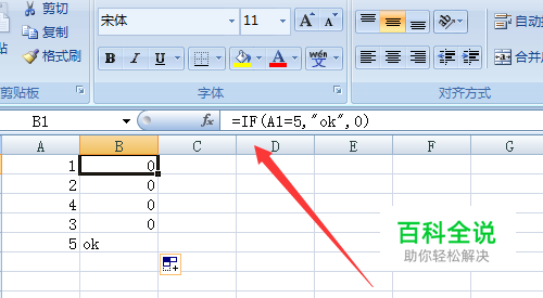 紧接着输入if函数的,两种结果,如果符合结果则输出第二个参数的设置。如果不符合则在第三个参数上表达结果。这里的结果输出的是ok。