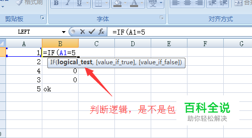 如在这张表中找到表格中是不是有包含数值等于5的结果,如第一个参数就是表示包含的逻辑表达式。
