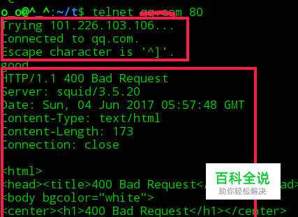 如果telnet 连接存在端口会出现如下图所示的内容,下图中以80端口为例。