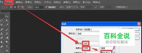 打开photoshopcs6.0创建一个文件 文件大小是900像素乘以300像素 分辨率是72像素每英寸 显示器的长度单位一般是英寸