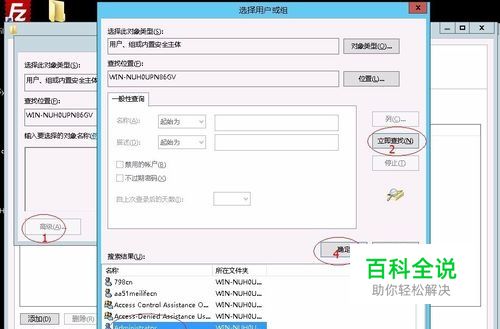 修改所有者为【administrtoar】: 弹出选择用户和组窗口,点击【高级】--【立即查找】,在搜索结果中选中【administrtoar】--【确定】,然后勾选【替换子容器……】--【应用】