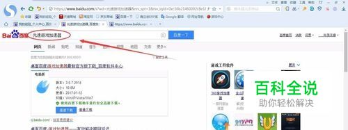 首先打开一个浏览器,打开百度首页,在搜索栏输入“光速游戏加速器”搜索结果