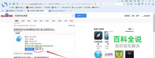 在搜索到的结果找到百度游戏加速器的下载连接,点击“普通下载”就可以了