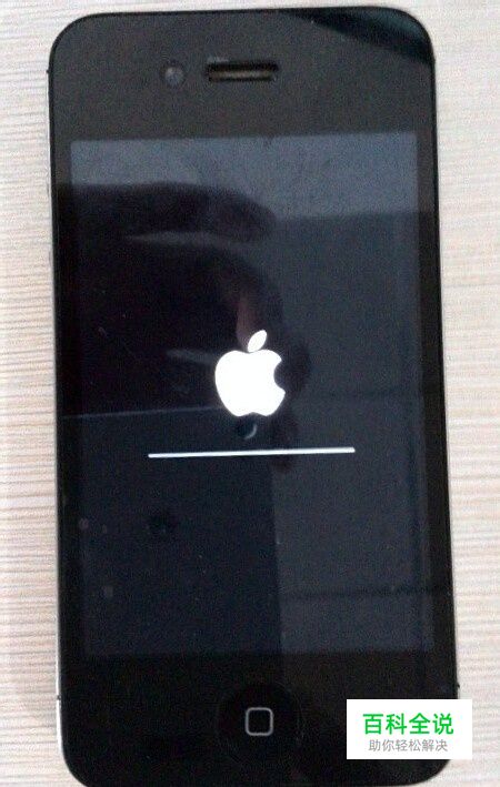 情况描述:手机无法开机,每次开机都停留在如下图所示的界面,白色苹果图标,下方有条类似进度条的白线,等待很长是时间后一直处于这个状态(手机是越狱了的)。