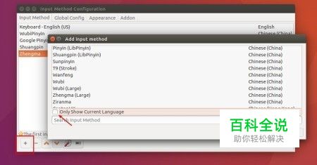 重启动电脑,此时会在桌面工具栏中出现小企鹅图标(Fcitx)。点击,选择设置Fcitx(ConfigureFcitx)。将show current language前的对钩取消。在搜索栏中找到选择你想安装的输入法,例如Google Pinyin。然后就可以使用了。使用时可通过Ctrl+空格,进行输入法切换。