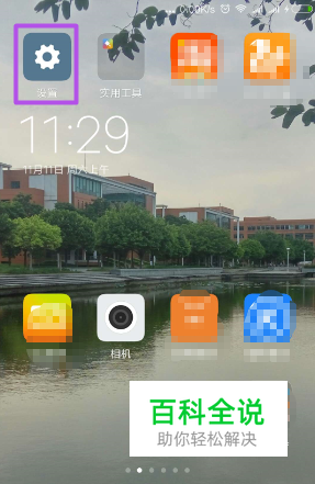 然后点击桌面的“设置”图标。