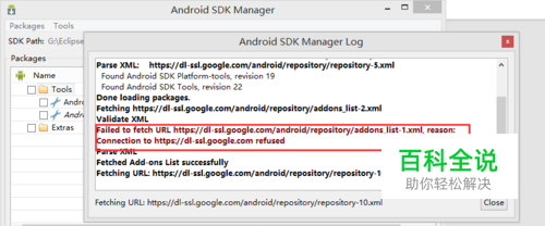 打开Android SDK Manager,它会获取可安装的sdk版本,但是国内有墙,有时候会出现获取失败的情况。