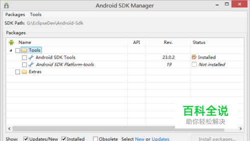 下载后双击安装,指定Android SDK的安装目录,为了方便使用Android SDK包含的开发工具,我们在系统环境变量中的Path设置Android SDK的安装目录下的tools目录。 在Android SDK的安装目录下,双击“SDK Manager.exe”,打开Android SDK Manager,Android SDK Manage负责下载或更新不同版本的SDK包,我们看到默认安装的Android SDK Manager只安装了一个版本的sdk tools。