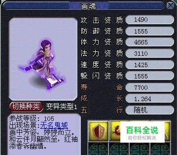 画魂在105级别, 出现在无名鬼城,拥有技能:地狱烈火、幸运、高级魔之心。 召唤地狱烈火可以攻击敌方的群体,造成火系的伤害。