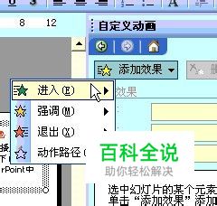 如果“字幕式”动画选项不在“进入”级联菜单中,可以选择其中的“其他动画”选项来设置。