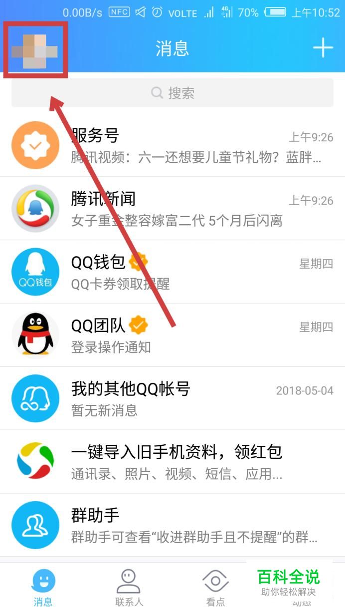 打开QQ,在界面左上角找到你自己的头像,点击进入。