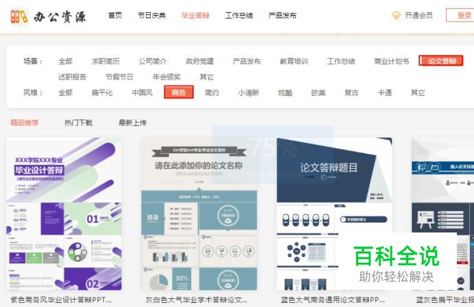 如果你是要制作一份关于毕业答辩大ppt,那么我们进入网站之后,在场景分类下,选择论文答辩,然后在风格分类下,选择想要的风格,就会出现对应的模板了。