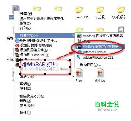 6:怎样打开那个 txt 文件?打开 WinRAR ,点击“文件→打开(快捷键 Ctrl + O )”,然后选择文件类型为“所有文件”,找到 winshome.jpg ,选择打开看看,是不是有个 txt 文件?
