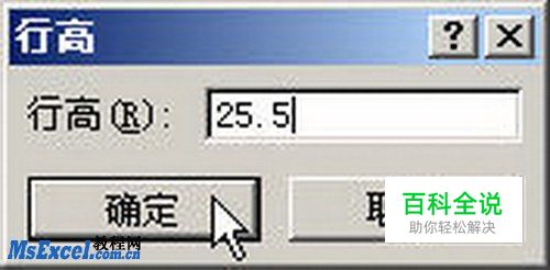 用户还可以单击“行高”或“列宽”按钮,打开“行高”或“列宽”对话框。在编辑框中输入具体数值,并单击“确定”按钮即可,如图2009061202所示。 图2009061202 指定行高或列宽数值