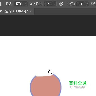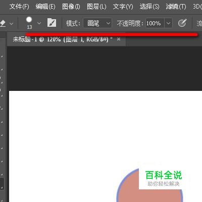 还有一个“平滑”度;当前默认是0值;假设,我们把平滑度设置为50%时,再去擦除图像,可以发现鼠标上多了一条红色线。这条线拖过之处图像显示平滑。 上述所说的这些是有关于橡皮擦工具的一些属性,我们按自己实际要求来设置,设置好后,再去擦除图像。