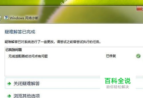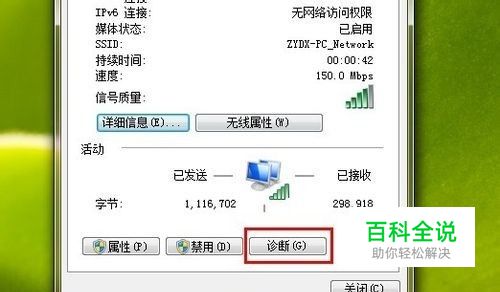 首先我们可以尝试着修复一下网络连接,windows XP操作系统的网络连接有“修复”选项,win7则没有,不过我们可以使用诊断,跟修复有相同功效,它可以发现并解决问题,遇到问题的时候不妨点击“诊断”试试吧。