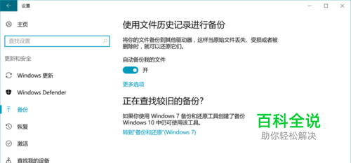点击左侧“备份”,在此界面下看到当前电脑备份设置情况。