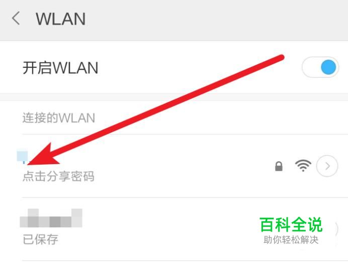 打开WLAN设置页面后,点击wifi下的分享密码。