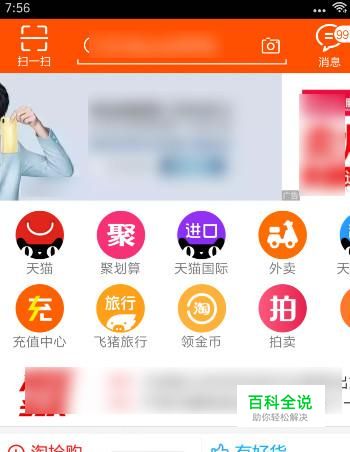 首先,在手机上轻点一下“手机淘宝”的图标,进入到手机淘宝的首页面。