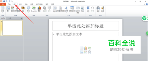 打开PPT,在任务栏找到插入,点击,点击开以后,找到图表,点击,点击开以后,选择自己喜欢的类型,在找自己喜欢的样式,点击确定,这就是加完之后的图表