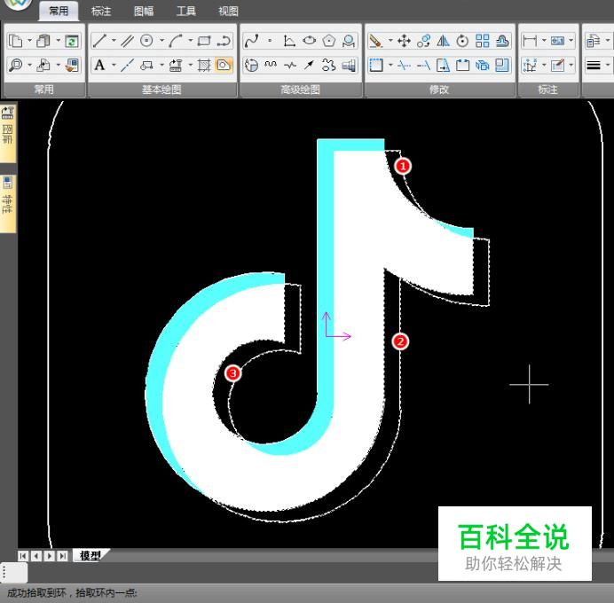 抖音火了以后,热度一直未减,就连它的logo都成了一种风尚,各种研究它的设计参数,最多见的就是ps版本的,而下面来介绍一个CAD版的绘制方法;