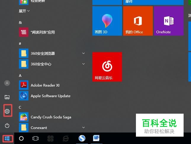 首先,我们点击电脑左下角的微软按钮,弹出的界面,我们点击设置;