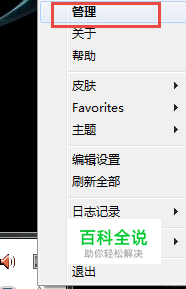 在任务栏中找到Rainmeter的图标,右键单击图标,选择管理。