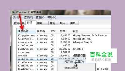 第二步:显示任务管理器之后,我们在进程里面找到explorer.exe启动项,鼠标右键点击,点击打开文件位置。
