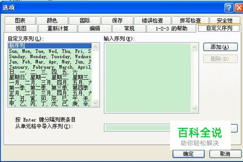 在菜单栏中选择工具—选项,弹出选项对话框,选择自定义序列。