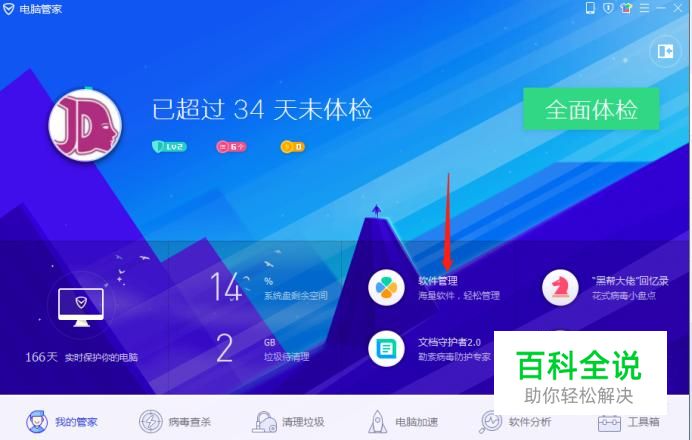首先我们可以打开电脑管家,然后点击“软件管理”进入。