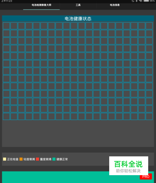 打开电池检测修复大师,在电池健康状态的界面,点击最下方的 开始 选项,如果其中出现了橙色乃至红色表示状态为衰竭的格子,则选择修复。