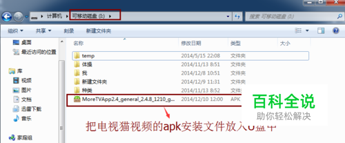 前往“电视猫 视频官网”,下载“电视猫视频”的apk,把下载好的“电视猫视频”安装包然后拷到U盘里面;