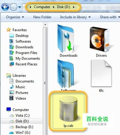 首先我们把那个ISO文件里的lp.cab文件放到一个文件夹下,比如我放在了我的D盘。