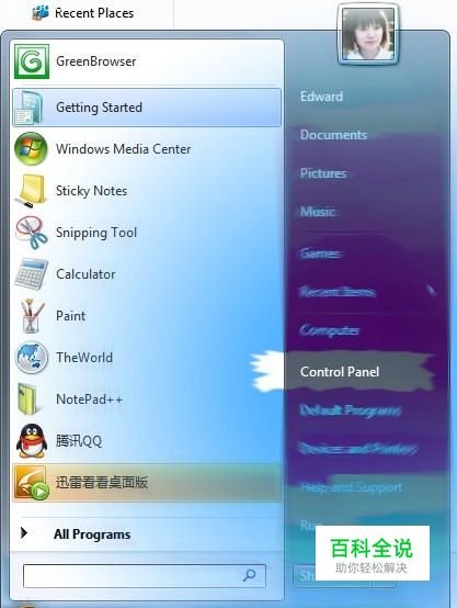 打开开始菜单中的Control Panel,如下图: