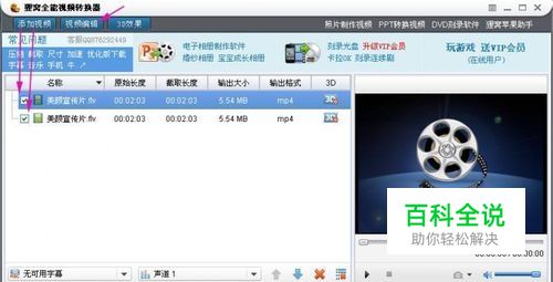 回到软件主界面,再选中第二个视频,进入视频编辑设置第一个截取段。