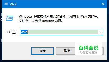 在弹出来的窗口输入“CMD”,然后确定或者按下回车键。
