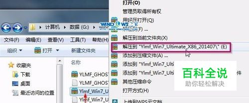 打开下载的系统镜像文件,右击选择“解压到Ylmf_Win7_Ultimate_X86_201407.iso”。