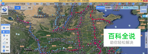 也可以只修改某一个图元的信息,在图层管理器中选择需要修改的图源对象点击【右键】,选择【图元设置/属性】。 弹出属性对话框可以完成以下属性修改: 1、修改点的颜色,点的大小,拖动点的位置 2、修改线的粗细、颜色、拖动线条的整体位置 3、修改面的填充颜色、面的边界线条颜色、拖动面的整体移动;显示面的周长、面积 4、显示/不显示 点、线、面、的标注名称 5、选中点、线、面、点右键删除选中 6、在标注绘制点、线、面的过程中单击右键取消上一步操作 【保存标注】 当你完成自己的标注后,可将标注保存为矢量格式(KML、KMZ、SHP、DXF、DWG等等),方便在其他软件中打开,比如:Arcgis、Global Mapper、AutoCAD等等...;如下图: 保存的过程中可以整体保存所有的,也可以只保存某一个图层或者某一个图元。 保存所有标记为一个文件:点击软件左上角【文件】按钮里面的保存;或者指向图层管理器里面的最上层目录点击【右键】,弹出对话框选择【导出】 保存某一个图层为一个文件:指向图层管理器里面需要保存的图层点击【右键】,弹出对话框选择【导出】 保存某一个图元为一个文件:指向图层管理器里面需要保存的图元点击【右键】,弹出对话框选择【导出】 【在AutoCAD中打开矢量标注】 如下图:标绘好的线路: