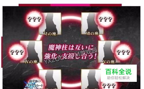 关于魔神柱互相支援的公告图 目前的6根柱子各自持有不同的效果。在攻略任意魔神柱时可能会随机出现其他魔神柱的支援技能?。也可能不出现。公告只揭露了其中一座的效果,并推荐优先干掉麻烦的支援(大概意指图中的那座魔神柱)。然而大家在看到杀阶柱子的掉落后就改变主意了。 各魔神柱的支援效果如下: II/情報室フラウロス——“情報室による予測”:对友方Debuff,全体Art卡性能down III/観測所フォルネウス——“観測所による分析”:对友方Debuff,全体Buster卡性能down IV/管制塔バルバトス——“管制塔からの指令”:魔神柱赋予自身無敵貫通状态 V/兵装舎ハルファス——“兵装舎からの供給”:魔神柱赋予自身暴击星发生率up状态 VI/覗覚星アモン——“覗覚星による推論”: 对友方Debuff,全体Quick卡性能down VII/生命院サブナック——“生命院による抑制”: 对友方Debuff,全体HP回复量down 以上效果全都可以被解除,但是没有结束回合的设定,是永续技能。不解除的话战斗中会一直存在。 另外还有就是掉落非常好,基本绊点数与六七章的绊效率free本相当,QP每场基础70w。 总之建议刷爆。 魔神柱掉落及职介