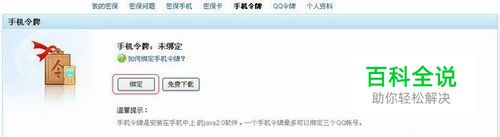 请选用您准备绑定的QQ帐号登录QQ安全中心,进入手机令牌页面,点击绑定