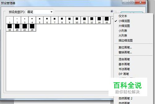 首先设置好画笔的样式:“编辑”—“预设管理器”/“预设类型”选择画笔,后面有个黑三角点击,选择方头画笔,完成。