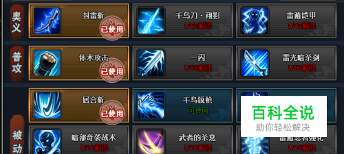 一闪 攻击正面的敌人,一定概率造成倒地和暴击此技能是一个不错的选择