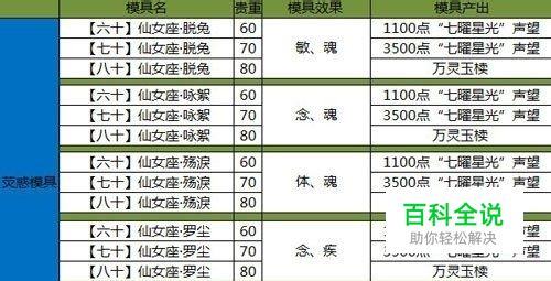 最近看到很多人的灵化都很混乱,所以想把这些模具列出来,这样子大家可以针对性的选择自己想要的东西。在这里简单的整理了一下各个灵化模具的产出、用途。 第一部分:目前游戏内所有灵化模具集合 第二部分:灵化条数 一般来说,我们说灵化的时候,会说,灵化了几条。 比如说用荧惑材料来荧惑,正常情况下是只会出一条,但是有几率出多条。 注意这里的单位——条。 灵化条数 看上图,太阴灵化,紫色的星点就是太阴星蕴灵化的结果。 一般来说用太阴正常情况下是三条,而这里,大家可以看到,包括破军、风息、天樽、罗尘,总共是4条。 所以大家常说的条,大概就是这个意思,破军下面虽然有2个数值,但是破军只算一条。 正常情况下: 荧惑——1条 太白——2条 太阴——3条 但有的时候,我们看到其他玩家的马,明明是蓝色的荧惑星点,但不止一条,这种情况就是属于人品大爆发啦! 希望大家都有好人品吧! 第三部分:七曜星光声望获得方式 大家看第一部分的模具会发现,60、70的荧惑、太阴模具的产出,都是使用“七曜星光声望”换取的。 其实老玩家都知道,把荧惑和太白卖给声望商人就可以获得“七曜星光声望”啦! 这算是对一些还不太了解玩家的小科普吧。 对了,荧惑也算是一个相当优秀的马粮哦! 第四部分:灵化公式 大家注意看一下灵化后的星点,会发现星点名字下面有着——贵重等级:70——这样的标示。 星点贵重等级是有固定公式计算的,而不是随机的。 一般来说贵重等级越高,出高属性的概率越大。 当然,不排除人品超好的情况下,低贵重出高数值,以及人品……那啥的情况下,明明是70多贵重,结果出了20多的数值。 不说废话了,星点贵重的计算公式就是: 星点贵重=(材料等级+材料等级+模具等级)/3 如:(65+65+80)/3=70 如灵化计算完的星点贵重是73.33333,只舍不入,最终贵重只有73。 转载:http://www.51lieyou.com/a/gonglue/20130803/12070.html