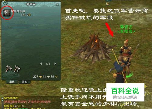 到底海字营后,要先找到军需官郭晋安,买破烂的军服。一见海字营看见的唯一一个是绿字NPC,就是他了。