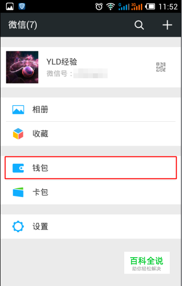 首先在手机打开最新版本的微信进入【我】的页面,选择【钱包】选项。 :
