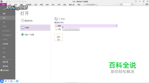 打开“福昕高级PDF编辑器”,点击“打开”,点击“计算机”。