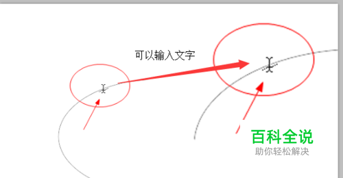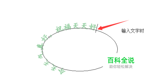 4、那么,上面文字的效果是外切的,也就是文字头部朝外,那么如何将文字头朝内(也就是内切)呢? 方式: 1)将鼠标放置圈外,并且有出现箭头 2)按住鼠标不动,将鼠标拖动至圈内 这样就 将文字 外切转内切,同理,鼠标从内拖动至外面,即完成 内切转外切