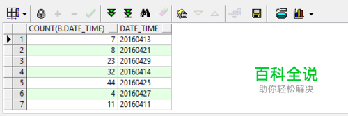 用substr()函数查询!例如: select count(b.date_time),b.date_time from (select substr(a.send_time,0,8) as date_time,a.* --截取字符from ASSP_SEND_MESSAGE_2016 a where send_time like '201604%' ) b group by b.date_time; 重点是susbstr(a.send_time,0,8),截取send_time字段,从第0位截取,截取长度为8个字符。