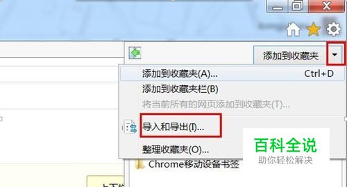 我固执的相信有人不会导出html书签,所以再演示下大家看看。(绝不是为了凑篇幅) 打开IE浏览器,点击五角星/点击向下箭头/导入和导出。