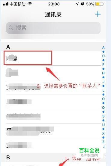 选择“通讯录”,然后找到想要设置照片的目标“联系人”,点击“联系人”